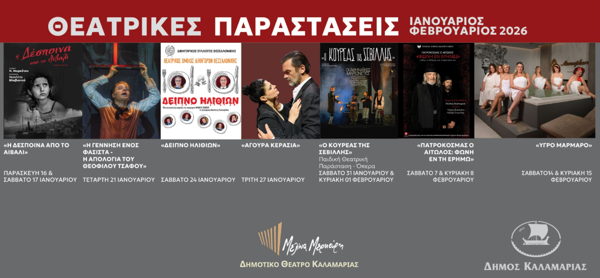 Ο Δήμος Καλαμαριάς επιβεβαιώνει για ακόμη μία χρονιά τη σταθερή του επένδυση στον πολιτισμό, φιλοξενώντας τον Ιανουάριο και τον Φεβρουάριο σημαντικές θεατρικές παραγωγές υψηλού κύρους.