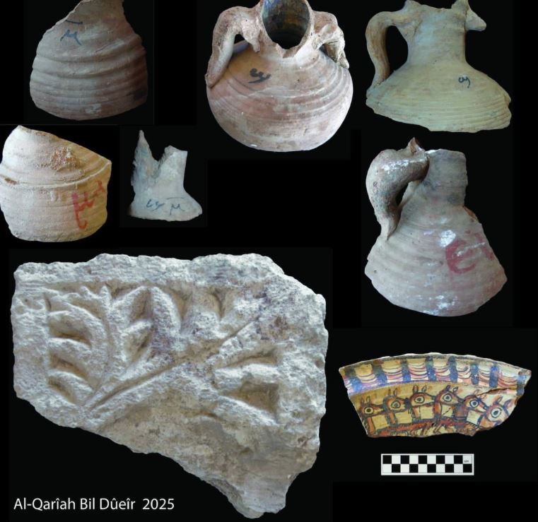 Τα ανακτημένα αντικείμενα περιλαμβάνουν αποθηκευτικούς αμφορείς με επιγραφές που μπορεί να υποδεικνύουν το περιεχόμενό τους ή τον κάτοχό τους, δηλαδή όστρακα (θραύσματα κεραμικής) και ασβεστολιθικές πλάκες με κοπτικές επιγραφές, καθώς και καθημερινά αντικείμενα, πιθανώς από αναμνηστικές στήλες ή επιτύμβιες στήλες.