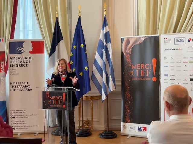 Η Πρέσβειρα της Γαλλίας στην Ελλάδα, Laurence Auer, παρουσίασε, σήμερα 19 Φεβρουαρίου, στην Πρεσβευτική κατοικία την Εβδομάδα Γαλλικής Γαστρονομίας «MERCI CHEF», η οποία επιστρέφει για τρίτη συνεχόμενη χρονιά με εκδηλώσεις από την 1η Μαρτίου έως τις 6 Μαρτίου στην Αθήνα, τη Θεσσαλονίκη, την Κέρκυρα, την Κρήτη, και τη Ρόδο.