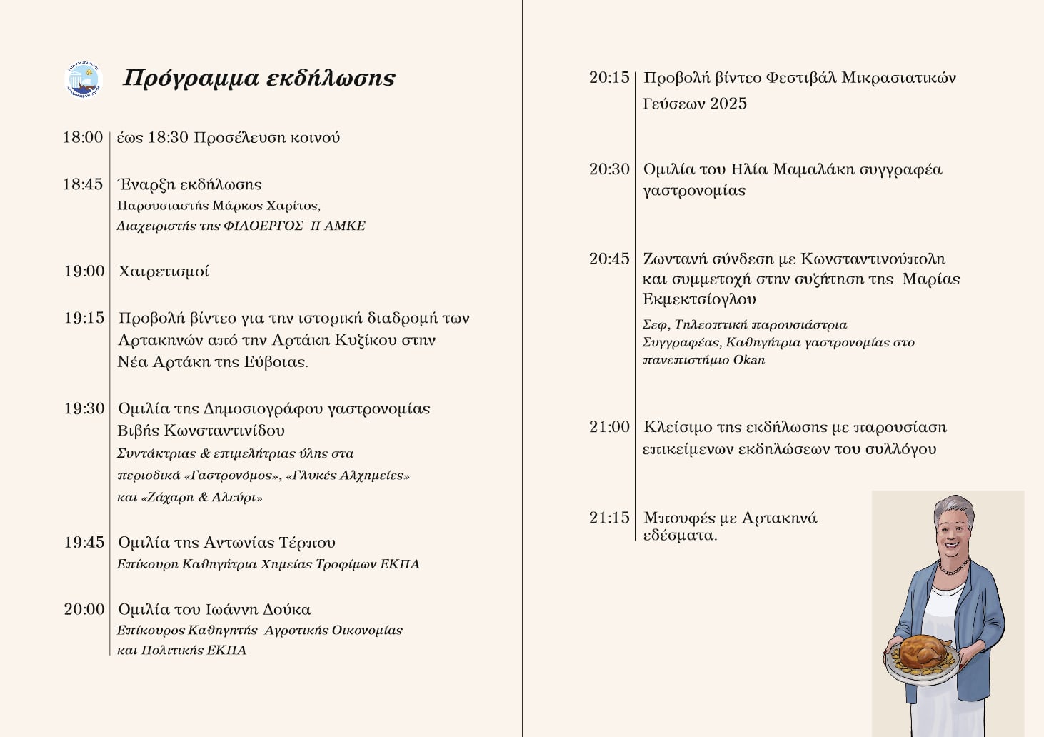 Με πολλά στoιχεία «μπόλιασαν» τη ζωή του ελληνικού κράτους οι Μικρασιάτες πρόσφυγες που έφτασαν μετά το 1922 στη νέα τους πατρίδα. Ένα από αυτά τα στοιχεία είναι και η μικρασιάτικη κουζίνα. Το θέμα αυτό θα παρουσιάσει ο Σύλλογος Aπανταχου Αρτακηνών – Κυζικηνών που διοργανώνει εκδήλωση για την ολοκλήρωση της άυλης πολιτιστικής κληρονομιάς με θέμα «Η Αρτακηνή γαστρονομία, μία κληρονομιά εν ζωή και εν πλήρει γνώση».