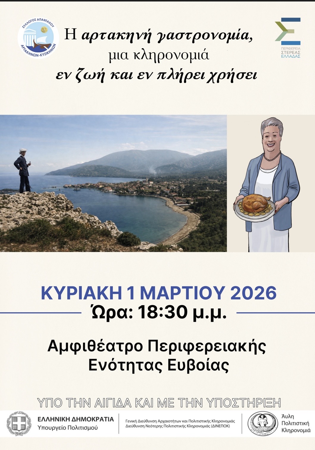 Η εκδήλωση θα πραγματοποιηθεί την Κυριακή 1η Μαρτίου και ώρα 6.30μμ στο αμφιθέατρο της Περιφερειακής Ενότητας Ευβοίας.