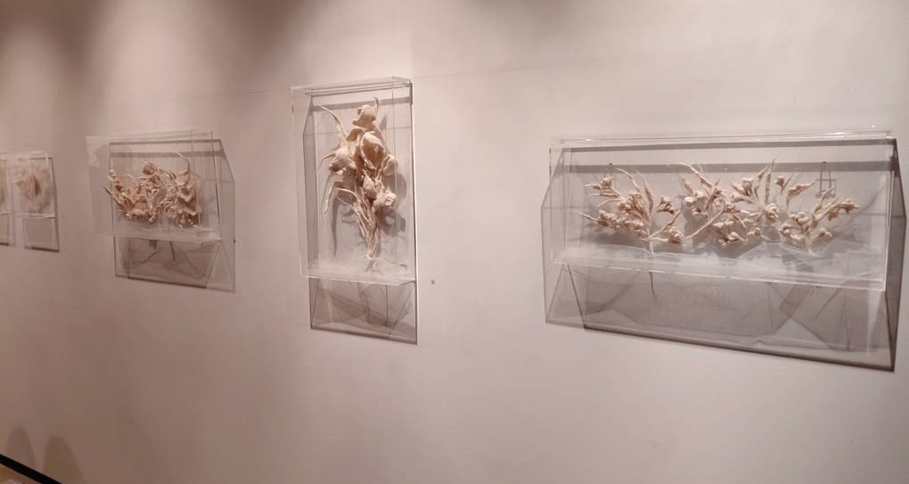 Την πρώτη ατομική έκθεσή της με τίτλο «Παρειδωλίες» παρουσιάζει στον Βόλο η εικαστικός Κλειώ Παπαϊωάννου. Η έκθεση φιλοξενείται στον Χώρος Τέχνης Δ και περιλαμβάνει 13 άτιτλα έργα δημιουργημένα από felt (τσόχα), σε διαφορετικά σχήματα και μεγέθη, όλα σε λευκές αποχρώσεις.