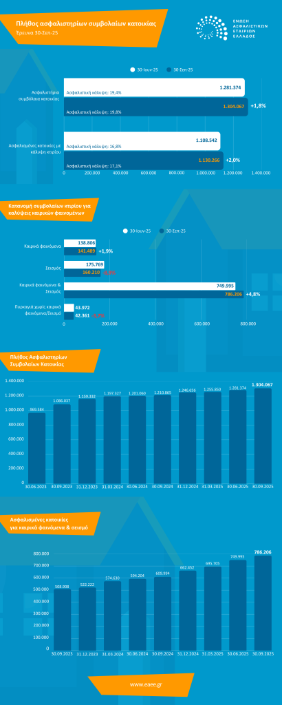 Σύμφωνα με την ΕΑΕΕ, τα στοιχεία δείχνουν ότι τα συμβόλαια ασφάλισης περιουσίας εμπλουτίζονται σταδιακά με το πλήρες φάσμα καλύψεων για καταστροφικά γεγονότα που προβλέπει το ισχύον νομοθετικό πλαίσιο.