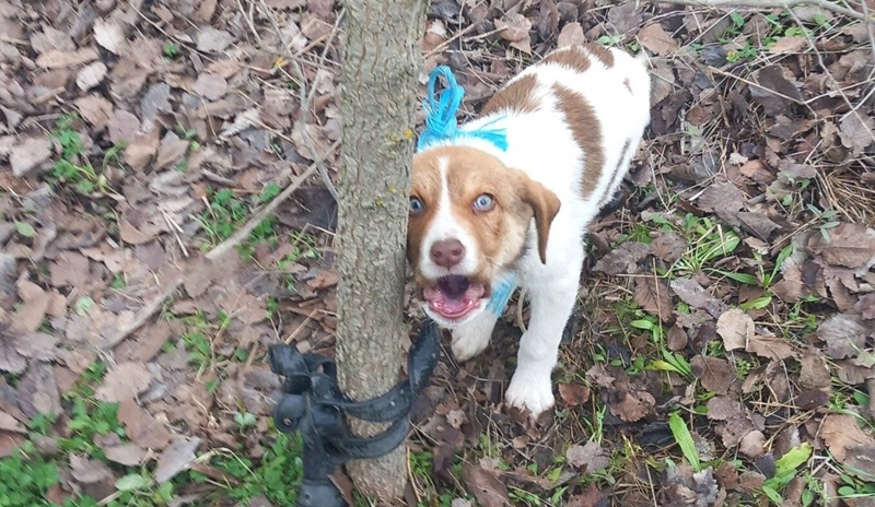 Η τριών μηνών σκυλίτσα βρέθηκε στις 24 Ιανουαρίου από μια κάτοικο της περιοχής που είχε βγάλει βόλτα το σκυλάκι της. Άκουσε τις κραυγές πόνου του κουταβιού και έσπευσε να καλέσει σε βοήθεια μέλη φιλοζωικής ομάδας. Το 3 μηνών σκυλάκι ήταν δεμένο από το λαιμό στο δένδρο με μια ζώνη παντελονιού ενώ ένα σχοινί ήταν δεμένο σφιχτά στο λαιμό του και το δεξί με το αριστερό πόδι είχαν δεθεί σφιχτά.
