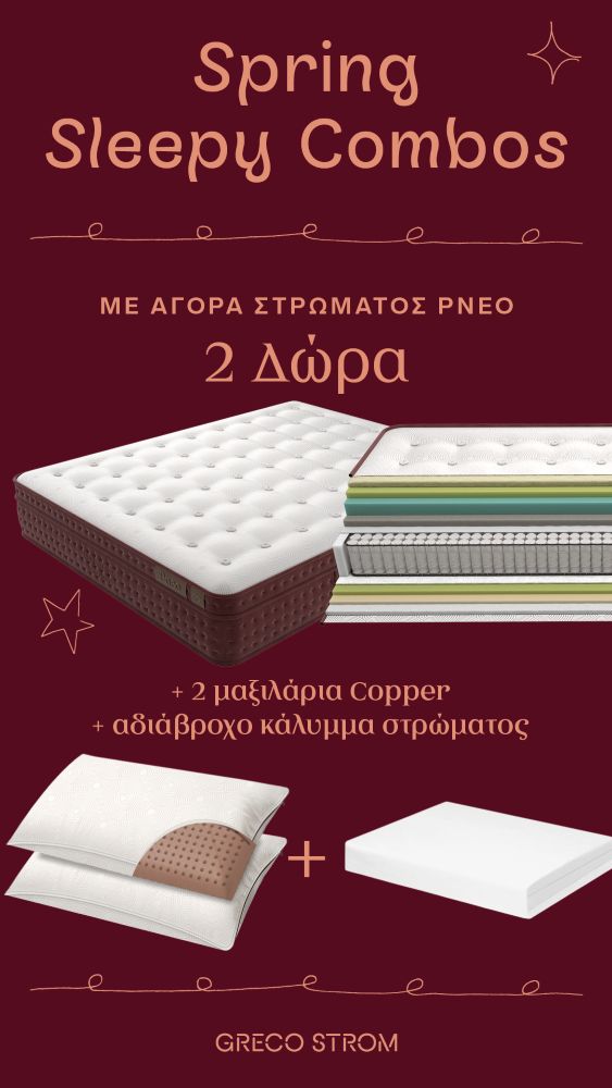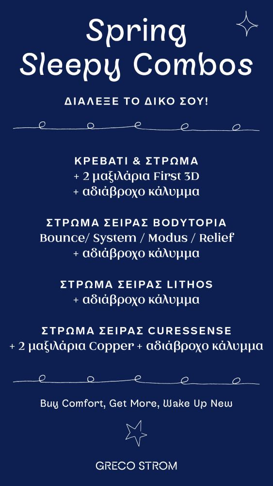 Έλα σήμερα σε ένα κατάστημα Greco Strom και βρες το ιδανικό σου combo ύπνου.