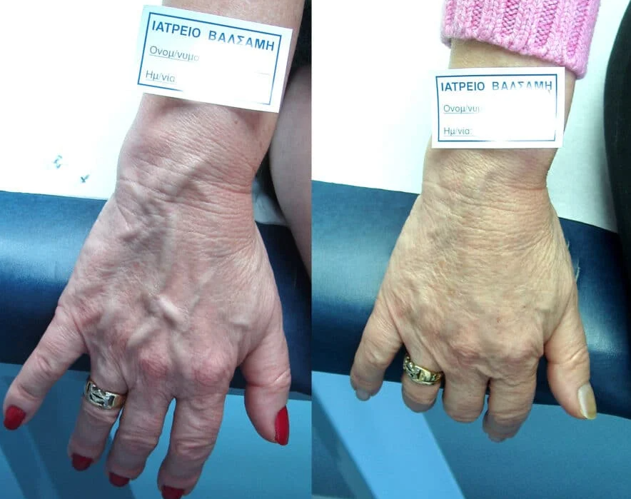 Kιρσοί στα χέρια πριν και μετά την διόρθωση – Φωτογραφία: valsamisveins.gr