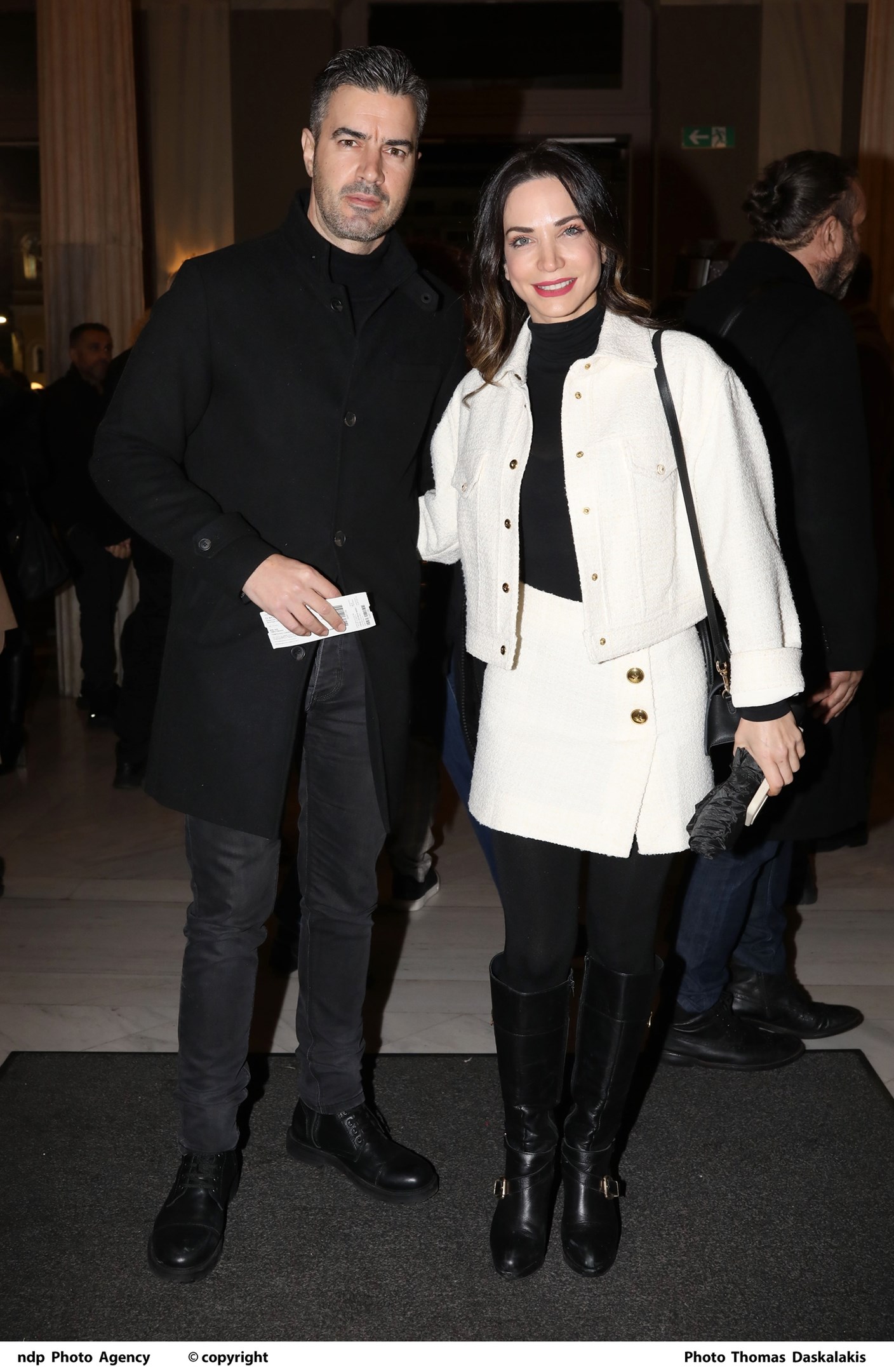 Ο Γιάννης Τσιμιτσέλης και η Κατερίνα Γερονικολού έδωσαν το παρών στη θεατρική πρεμιέρα της παράστασης “Ο Φονιάς, έγκλημα και αθώωση” στο Δημοτικό θέατρο του Πειραιά. Το ζευγάρι πόζαρε στον φωτογραφικό φακό κατά την άφιξή του στο θέατρο. Η Κατερίνα Γερονικολού επέλεξε τον διαχρονικά κομψό συνδυασμό του άσπρου και του μαύρου. Συγκεκριμένα, επέλεξε μία μίνι λευκή φούστα που συνδύασε με ασορτί σακάκι και με ένα μαύρο τοπ με ψηλό λαιμό. Το σύνολό της ολοκλήρωσε με μαύρο καλσόν και ψηλές δερμάτινες μπότες.