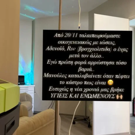 «Από 20 Νοεμβρίου ταλαιπωρούμαστε οικογενειακώς με ιώσεις. Αδενοϊό, RVS (βρογχιολίτιδα) ο ένας μετά τον άλλον… Εγώ πρώτη φορά αρρώστησα τόσο βαριά. Μανούλες καταλαβαίνετε όταν πέφτει το κάστρο πώς είναι. Ευτυχώς η νέα χρονιά μας βρήκε υγιείς και ενωμένους», σημείωσε η Κωνσταντίνα Σπυροπούλου στην ανάρτησή της.