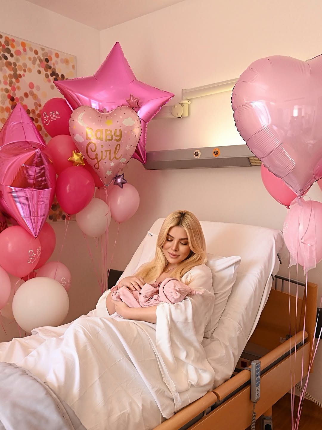 Στις εικόνες που δημοσίευσε, το δωμάτιο στο μαιευτήριο είναι γεμάτο ροζ μπαλόνια και διακοσμητικά, δημιουργώντας ένα σκηνικό γιορτής για τον ερχομό της μικρής Πολυξένης-Αλεξάνδρας. Δίπλα της βρίσκεται και ο σύντροφός της, Παναγιώτης Κουτσουμπής, με τον οποίο μοιράζεται αυτές τις πρώτες, μοναδικές στιγμές ως μαμά και μπαμπάς πλέον.