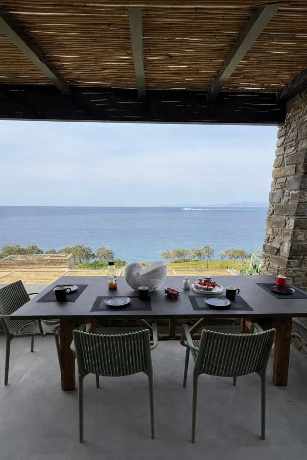 Πρόκειται για μια κατοικία που ξεπερνά τα 160 τετραγωνικά μέτρα, αναπτυγμένη σε επίπεδα, με υπόγειο περίπου 111 τ.μ. που φιλοξενεί τέσσερα υπνοδωμάτια και βοηθητικούς χώρους, ενώ το ισόγειο εκτείνεται σε περίπου 50 τ.μ. Οι χώροι χαρακτηρίζονται από μίνιμαλ αισθητική, κυκλαδίτικα στοιχεία, λευκούς τόνους και φυσικά υλικά, ενώ η ανεμπόδιστη θέα στο Αιγαίο και η τεράστια πισίνα δημιουργεί μια αίσθηση απόλυτης ηρεμίας και ιδιωτικότητας.