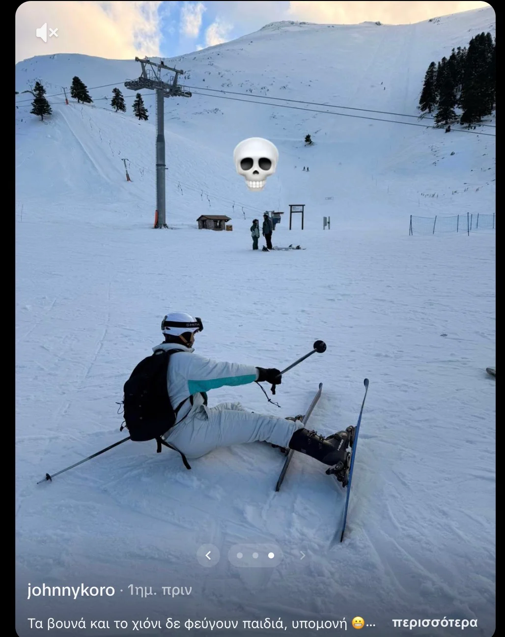 Στην επόμενη φωτογραφία, όμως, εμφανίζεται… πεσμένος στο χιόνι, επιβεβαιώνοντας –στα μάτια τουλάχιστον των superstition fans– τη «γκαντεμιά». Αυτό που σίγουρα δεν περίμενε, ήταν ότι ο ίδιος ο πρωθυπουργός θα έβλεπε την ανάρτηση και θα απαντούσε προσωπικά.