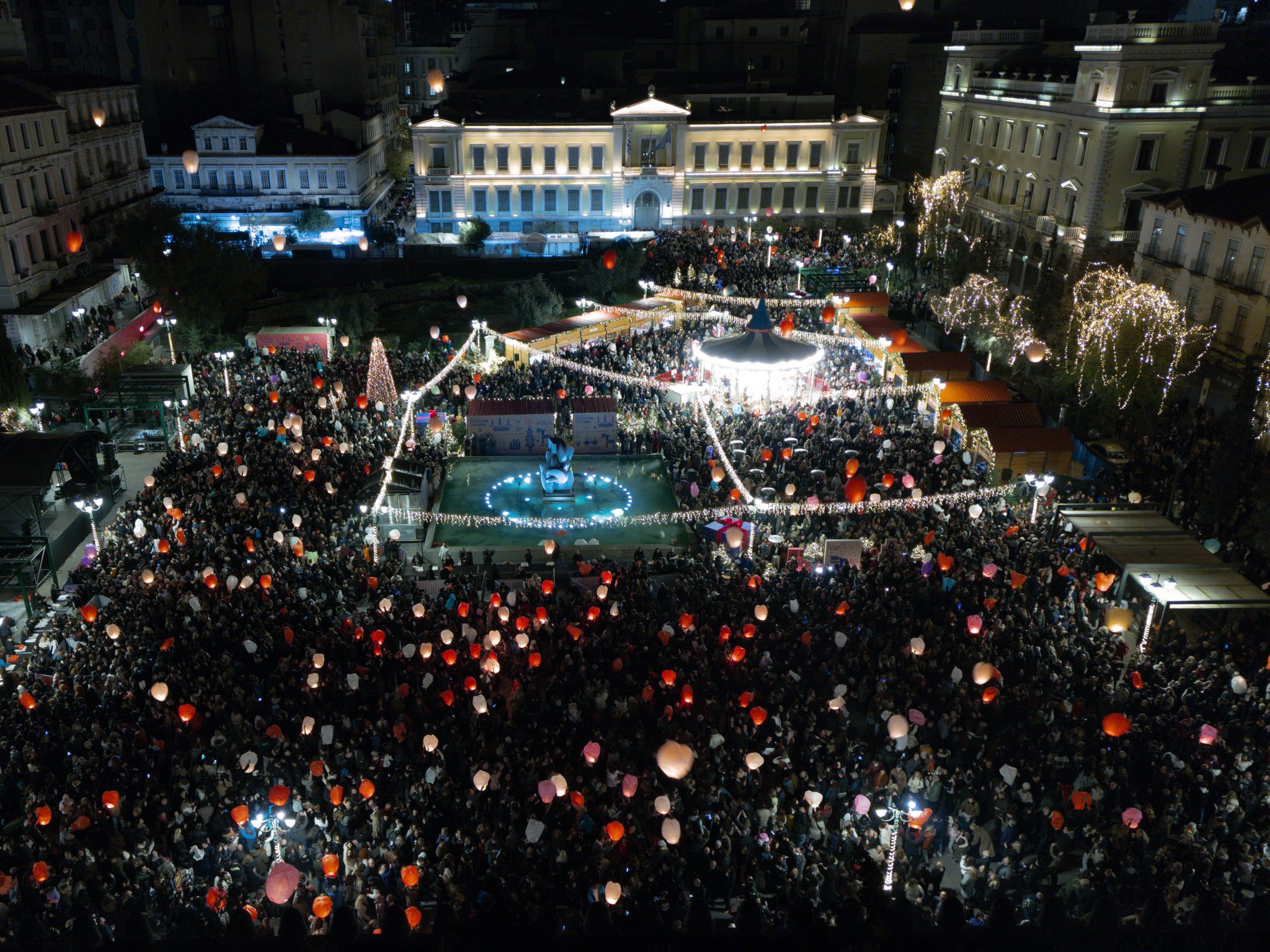 Από χιλιάδες φαναράκια φωτίστηκε ο ουρανός της Αθήνας το βράδυ της Παρασκευής (26/12), καθώς πραγματοποιήθηκε στην πλατεία Κοτζιά η «Νύχτα των Ευχών», που οργάνωσε ο Δήμος Αθηναίων.