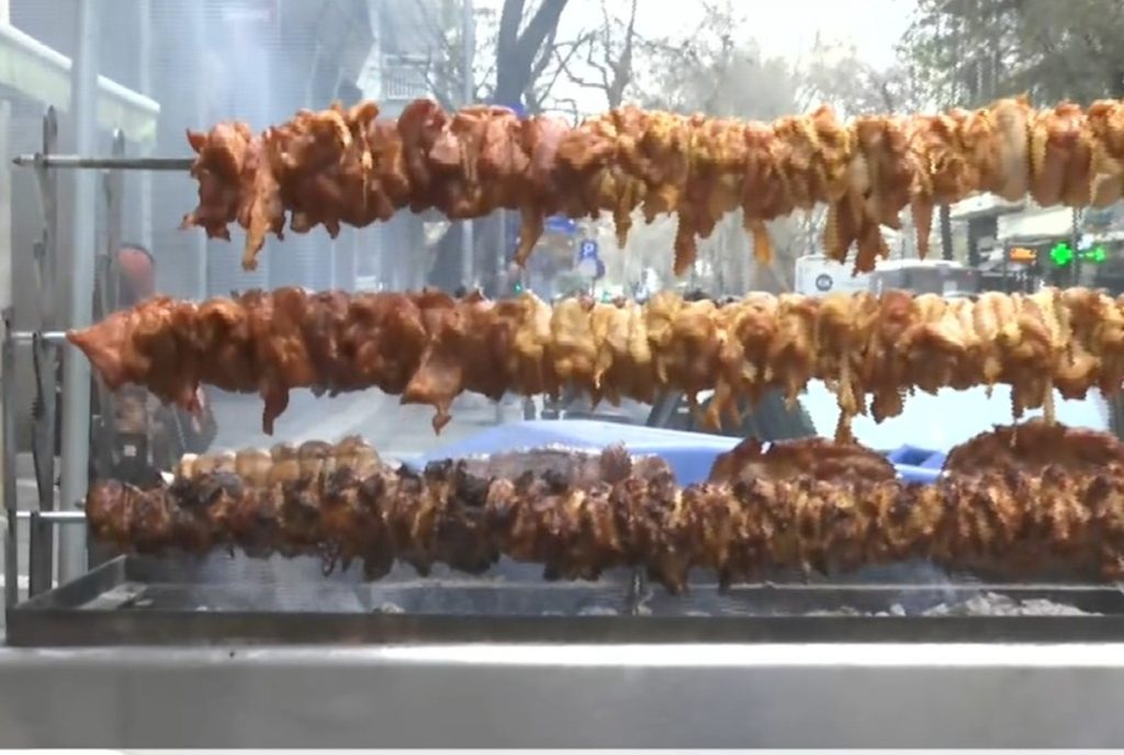 Στο κέντρο της Αθήνας, τα κάρβουνα άναψαν από τις 5 το πρωί. O Κώστας Στάμου βρέθηκε σε ψητοπωλείο όπου ξεκίνησε από πολύ νωρίς το ψήσιμο καθώς όπως είπαν οι υπεύθυνοι της επιχείρησης αναμένουν να διαθέσουν συνολικά 15.000 χοιρινά καλαμάκια μέχρι το βράδυ ενώ αρκετοί καταναλωτές προνόησαν έλαβαν τις παραγγελίες τους. Ο «μάστορας» του καταστήματος δεν παρέλειψε να αποκαλύψει τα μυστικά της επιτυχίας: χαμηλή φωτιά χωρίς φλόγα, συνεχές γύρισμα και περίπου 15 λεπτά στη σχάρα, ώστε το κρέας να πάρει σωστό χρώμα εξωτερικά και να μείνει ζουμερό εσωτερικά. Η μαρινάδα θα πρέπει να παραμένει απλή — λάδι, αλάτι, πιπέρι και ρίγανη — με το «μάτι» του ψήστη να αποτελεί, όπως λένε, το καλύτερο ρολόι.