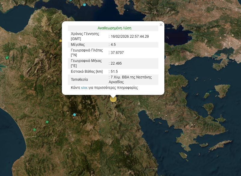 Σεισμική δόνηση μεγέθους 4,5 βαθμών της κλίμακας Ρίχτερ, σημειώθηκε τρία λεπτά πριν από τη μία τα μεσάνυχτα στην Αρκαδία.