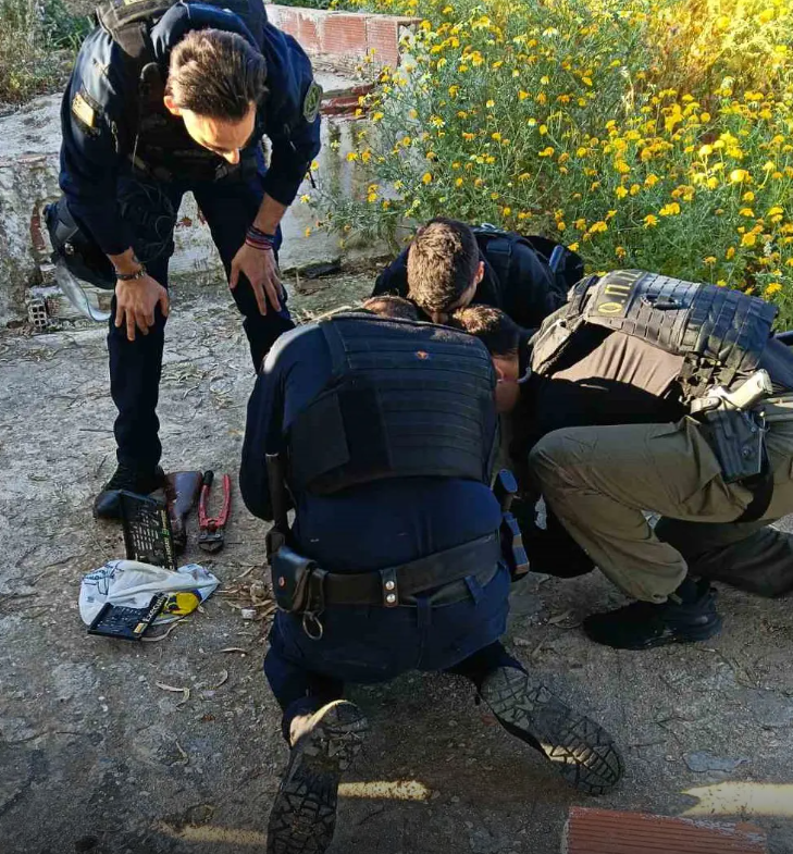 Στο πλαίσιο των ερευνών σε κατοικίες, εντοπίστηκε κρυμμένο μέσα σε σηπτική δεξαμενή οπλισμός αποτελούμενος από 2 κυνηγητικές καραμπίνες, για τις οποίες είχε δηλωθεί κλοπή το 2025 από τις περιοχές του Περάματος και της Θήβας, καθώς και πλήθος πινακίδων κυκλοφορίας, των οποίων η προέλευση διερευνάται.