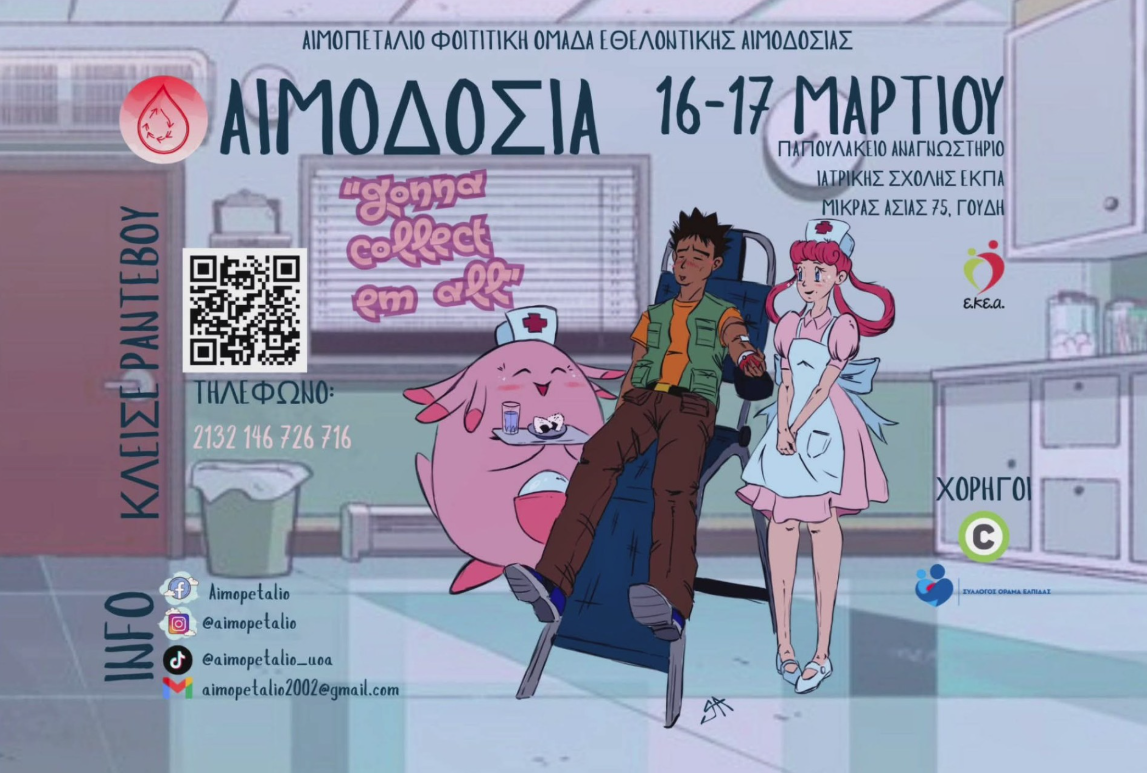 Ανοίγουμε τη σεζόν του 2026 με την Pokémon themed Εθελοντική Αιμοδοσία του Αιμοπεταλίου, την Δευτέρα 16 και Τρίτη 17 Μαρτίου, ώρες 11:00-15:30, στο “Παπουλάκειο” Αναγνωστήριο Ιατρικής Σχολής ΕΚΠΑ (κτήριο 14).